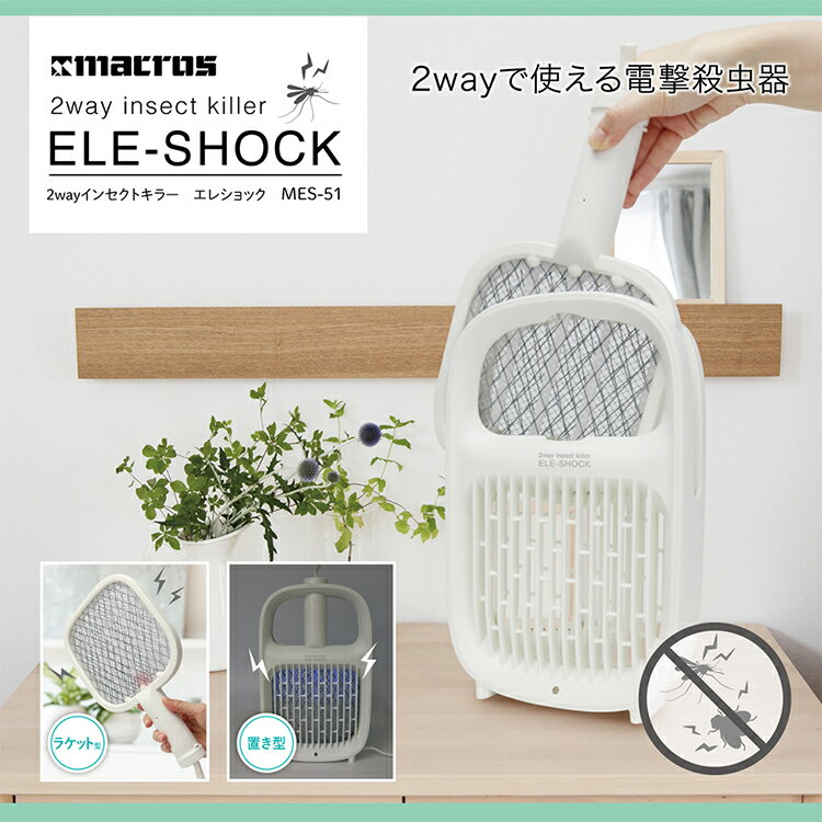 【送料無料】電撃殺虫ラケット 充電式 置型 電撃殺虫器 2WAY 殺虫灯 蚊取り害虫駆除 アウトドア キャンプリビング 換気 コロナ対策/MES-51エレショック