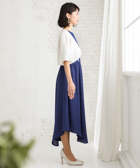 ドレス パーティー 大きいサイズ レディース 2点セット イレギュラーヘム ロング ワンピース + ボレロ サイズ フォーマル ロイヤルブルー+アイボリーベージュ/ネイビー+アイボリーベージュ 15〜38号 結婚式 フォーマル 二次会 披露宴 謝恩会 同窓会 ニッセン nissen
